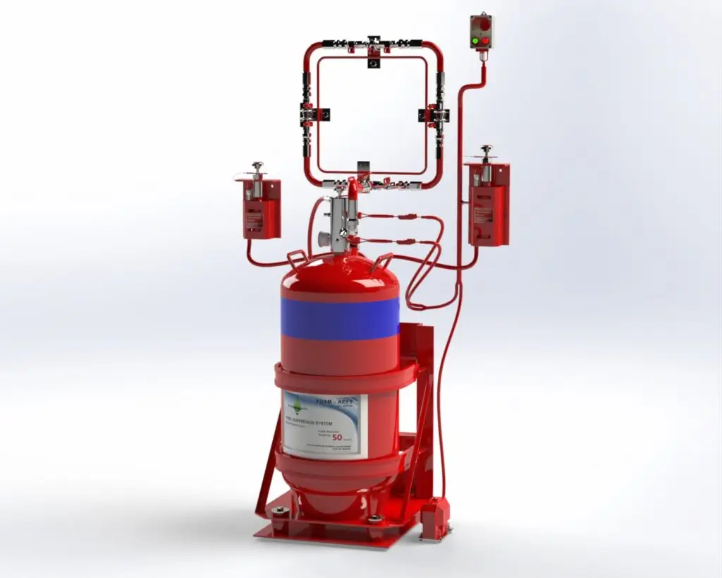 To overcome this problem, FoamGuard comes with FoamGuard Spray System, a real world proven AFFF automatic fire suppression solution. AFFF foam is the most effective fire extinguishing medium to be used on equipment consuming fossil fuel. AFFF foam prevents the contact between fuel and oxygen, resulting in suppression of fire. In addition, it also help cools the burnt area and neutralize the chemical constituent of the fuel to prevent reignition.